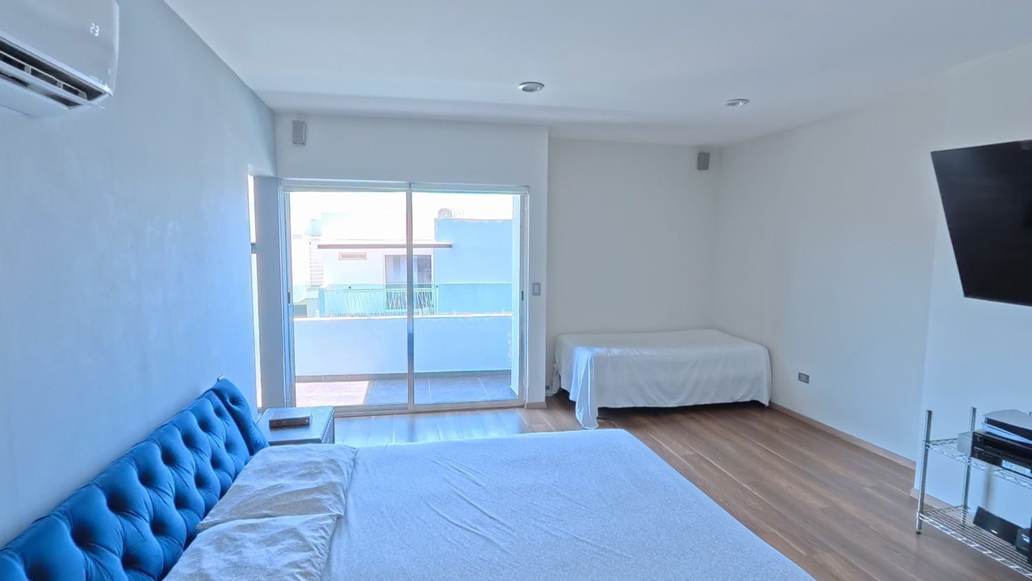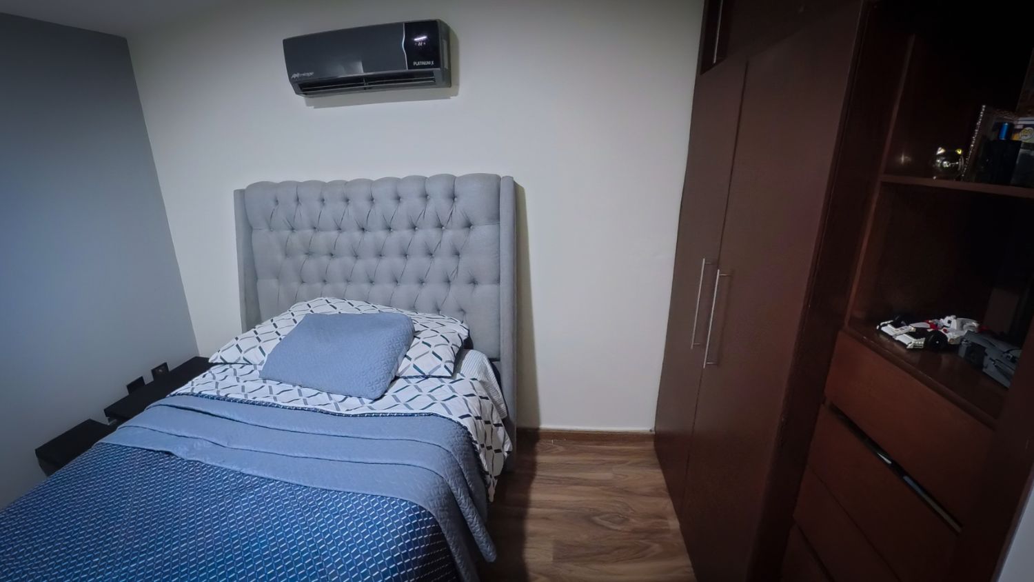 Dos recámaras amplias con closets hechos a medida por carpintero profesional: puertas corredizas de piso a techo, cuatro cajones integrados, espacio para mochilas y almacenamiento optimizado. La recámara del medio tiene característica única: aislamiento acústico natural que no existe en otras habitaciones del fraccionamiento, ideal para estudio o descanso profundo. Ambas con aire acondicionado individual, ventanas hacia patio interior, y capacidad para camas Queen o King sin saturación. No son solo cuartos más grandes: son espacios pensados para que cada hijo tenga privacidad, orden, y comodidad real.